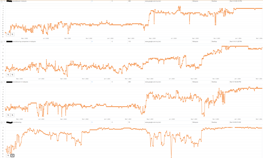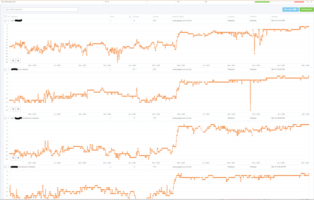 In 2022, an OEM manufacturing company hired our SEO agency to help improve their search engine rankings and visibility. Prior to engaging our services, the company had done some SEO work on their own and managed to achieve good rankings for key industry phrases like “OEM product malaysia”, “product OEM Malaysia”, “OEM product manufacturer Malaysia” and similar keywords.Background