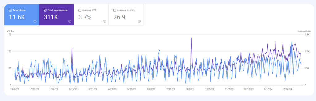 After implementing the proposed content optimization and creation strategies, the OEM manufacturer’s website experienced significant organic traffic growth. Within a span of just 16 months, the daily impressions increased from 200-300 to 1,200, representing a remarkable 400-500% growth rate. This substantial improvement in organic reach can be attributed to the successful execution of the semantic SEO techniques and the development of high-quality, relevant content.- Daily impressions increased from 200-300 to 1,200 within 16 months