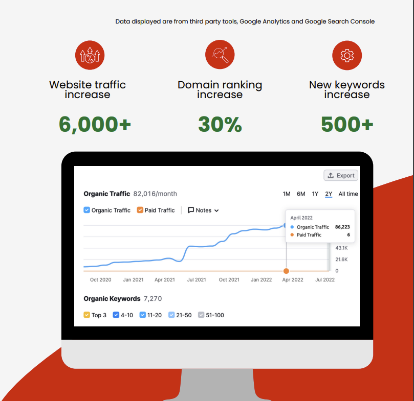 - Over 6,000+ Organic Website Traffic: The organic website traffic increased significantly, demonstrating the effectiveness of the SEO campaign in attracting potential customers.